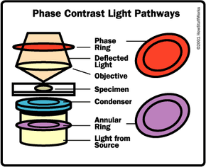 Light microscopes use a condenser above the light source in order to focus and direct the light up through the specimen in a small.